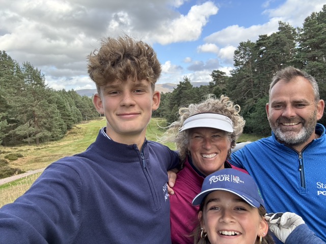 Caia’s whole family play golf together whenever they can … see windswept photo from recent trip to Grantown-on-Spey to the right!!